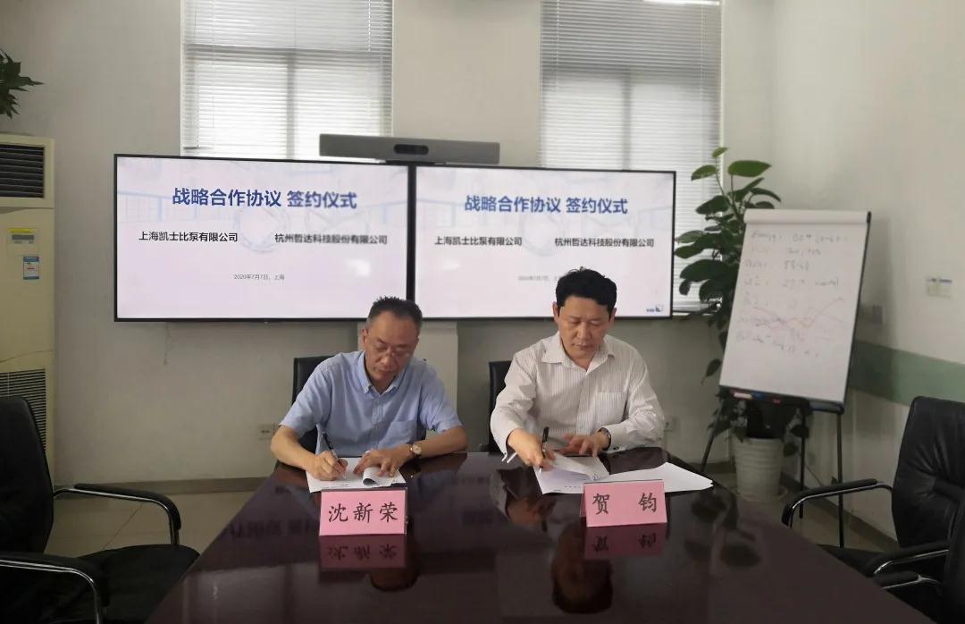 近日,杭州PA捕鱼官方网站科技股份有限公司与上海凯士比泵有限公司正式达成战略合作。双方将本着资源共享、诚实守信、合作共赢、共同发展的原则,充分发挥各自优势,通过工业互联网与绿色智能制造的方式建立深度合作,共同推动高端泵制造与服务的数字化。